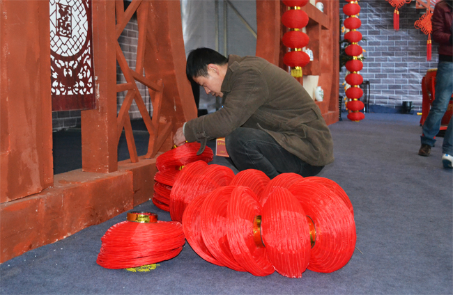 600個大紅燈籠高高掛——志愿者要經(jīng)過安燈、掛燈、試燈、調燈四個程序