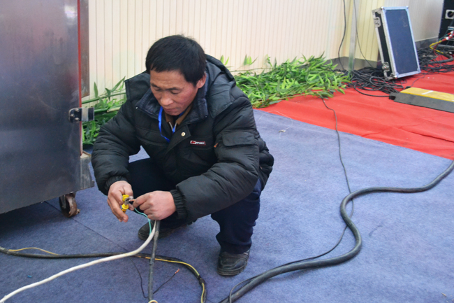 全天候保證會場用電——志愿者及時架設各種線路,排除場館用電故障