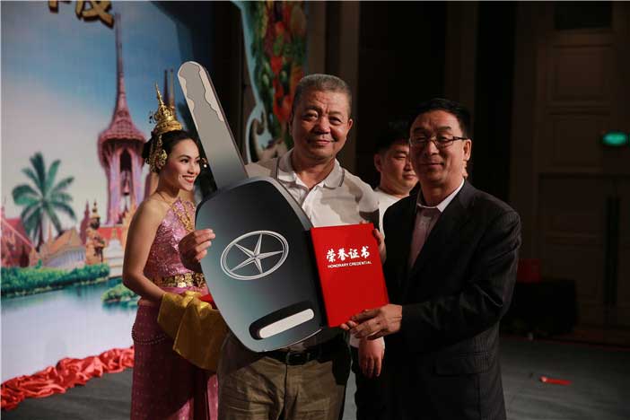 李總為榮獲銷(xiāo)售單項(xiàng)獎(jiǎng)的經(jīng)銷(xiāo)商頒發(fā)商務(wù)汽車(chē)