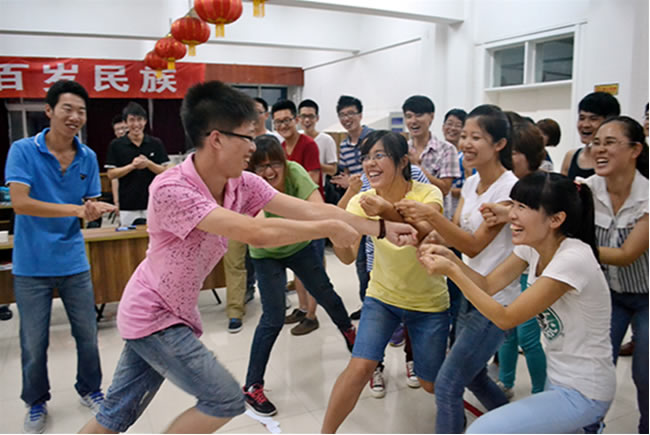 結(jié)束了緊張的培訓(xùn)以后,大家在做游戲