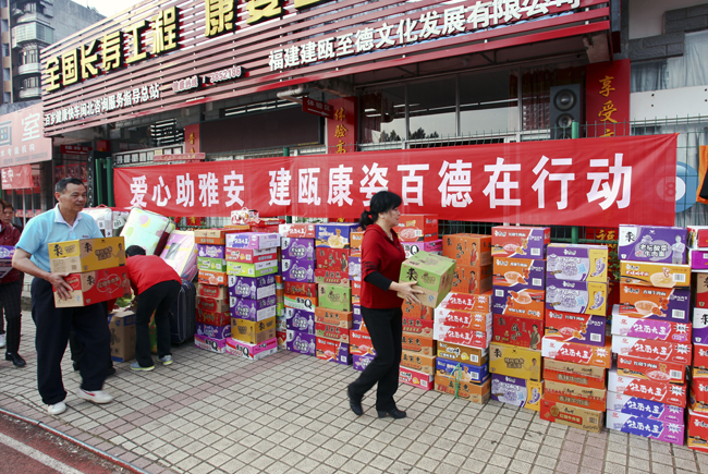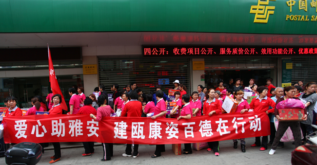 安地震牽動著無數(shù)人的心。4月23日,福建建甌康姿百德體驗店的員工和顧客在店門前舉行了愛心捐助活動。 雅安地震的消息一經(jīng)傳出,建甌康姿百德體驗店自發(fā)組織捐物資活動,體驗店顧客及熱心群眾共計200余人參加了此次捐助活動,他們打著“愛心助雅安,建甌康姿百德在行動”的條幅,親手把愛心物資送到郵局,一路上引來不少群眾圍觀,許多熱心群眾也紛紛慷慨解囊,捐款捐物。據(jù)統(tǒng)計,此次捐贈的方便面、棉被、礦泉水等愛心物資共計6萬余元,通過郵寄方式把愛心送到雅安。