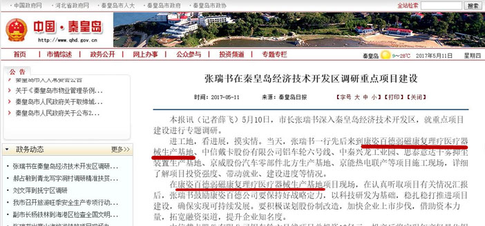 2017年5月10日,秦皇島市長張瑞書深入康姿百德第二科技園,就項(xiàng)目建設(shè)情況進(jìn)行調(diào)研,康姿百德集團(tuán)董事長李銀祥等集團(tuán)領(lǐng)導(dǎo)陪同調(diào)研。