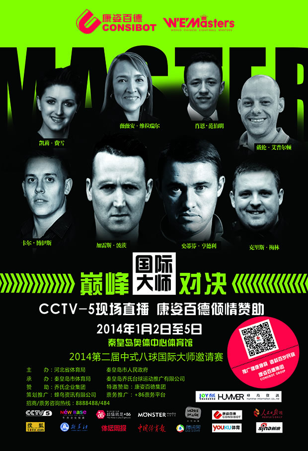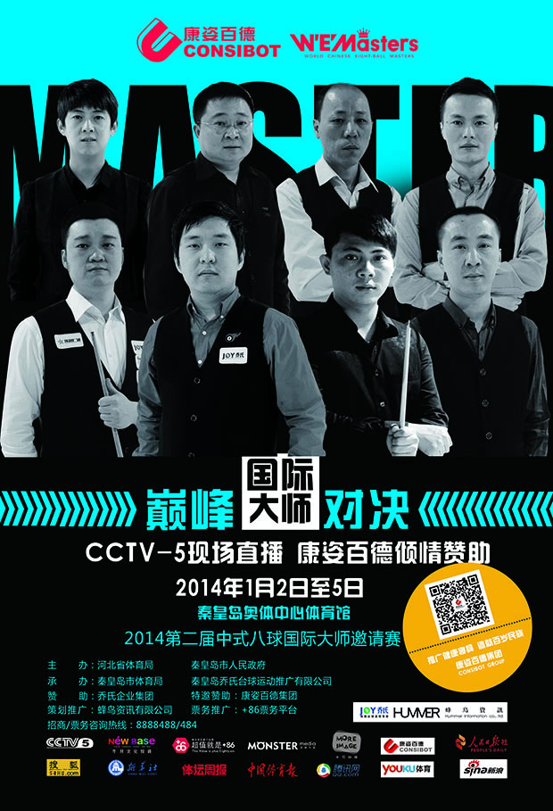 由河北省體育局、秦皇島市人民政府主辦,我公司傾情贊助的中國(guó)·秦皇島“喬氏杯”第二屆中式八球國(guó)際大師邀請(qǐng)賽,將于2014年1月2日至5日在秦皇島奧體中心舉行。屆時(shí),“臺(tái)球皇帝”亨德利等8名國(guó)際臺(tái)球大師將與8名國(guó)內(nèi)中式八球頂尖高手進(jìn)行“中外對(duì)抗”,為觀(guān)眾帶來(lái)一次盛會(huì)。