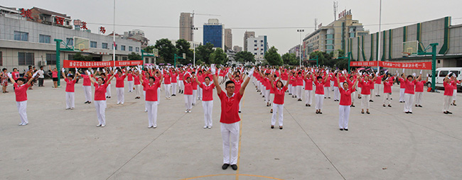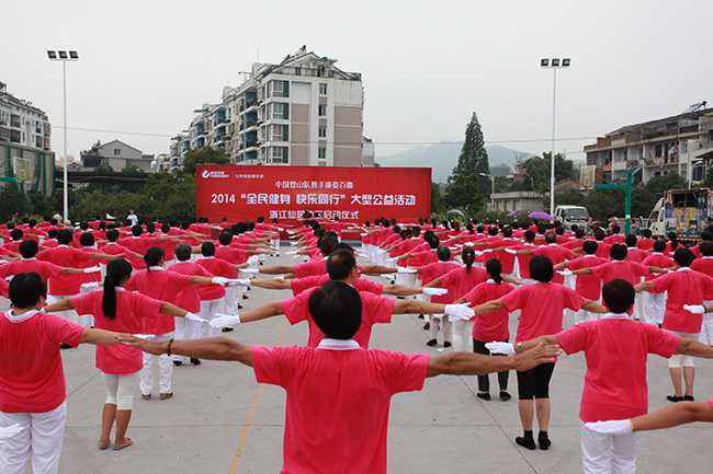 8月8日一大早,為迎接第六個“全民健身日”的到來,浙江仙居廣大市民相約來到城區(qū)西門,伴隨著優(yōu)美的樂曲,共同舞起康姿百德健身操,向人們展示激情與活力。動聽的音樂、優(yōu)美的舞姿,引得行人不時駐足觀看,開心幸福的笑容蕩漾在每個人的臉上,全民健身的理念也深深扎根于每個人的心中。 本次活動得到了當(dāng)?shù)赜嘘P(guān)部門和新聞媒體的關(guān)注,仙居電視臺進(jìn)行了現(xiàn)場采訪,并于當(dāng)晚在仙居綜合頻道播出。