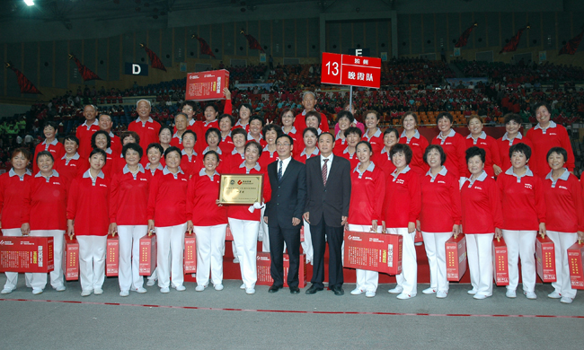 為了檢閱“全民健身 快樂同行”大型公益活動(dòng)的成果,表彰大會(huì)特別安排了康姿百德健身操比賽環(huán)節(jié)。94個(gè)代表隊(duì)共3000多人,他們士氣昂揚(yáng)、精神抖擻地展現(xiàn)著自己的風(fēng)采。各個(gè)方隊(duì)身著色彩鮮艷的運(yùn)動(dòng)服裝,手持彩旗,動(dòng)作整齊劃一,場面蔚為壯觀。展演比賽的隊(duì)員中既有80歲老人也有8歲的孩童,真正體現(xiàn)了全民健身的精神,康姿百德健身操的普及,讓康姿百德“立體健康”概念深入人心。經(jīng)過1個(gè)多小時(shí)的風(fēng)采展示,山東濱州晚霞隊(duì)拔得頭籌,榮獲一等獎(jiǎng);北京順義隊(duì)、北京通州隊(duì)榮獲二等獎(jiǎng);北京門頭溝隊(duì)、河北武安夕陽紅隊(duì)、北京昌平隊(duì)榮獲三等獎(jiǎng)。