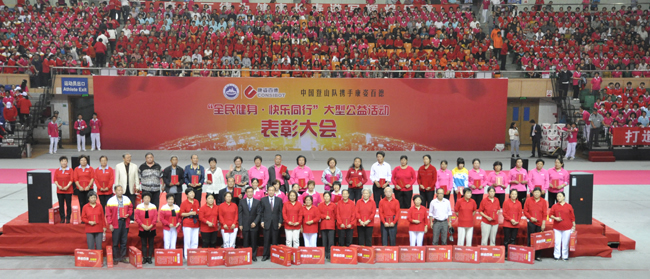 “全民健身 快樂同行”大型公益活動(dòng)表彰大會(huì)在激昂的《歌唱祖國》的大合唱中圓滿閉幕??底税俚屡c來自全國的健身愛好者們共同譜寫了一曲快樂健身的不朽贊歌。