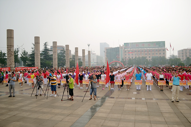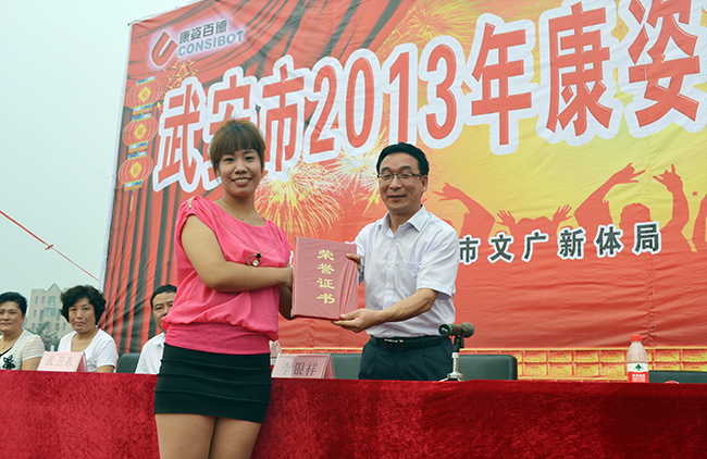 8月2日上午,邯鄲武安市武安廣場五彩斑斕、人聲鼎沸。隨著熟悉的節(jié)拍,一支支代表隊舞動著優(yōu)美的舞姿,精神飽滿,動作整齊,數(shù)千人徜徉在一片舞的海洋之中,盡情享受康姿百德健身操帶給人們的健康和快樂。 為迎接第五個“全民健身日”的到來,引導廣大群眾積極參加體育健身活動,武安市文廣新體局、康姿百德邯鄲分公司聯(lián)合在武安廣場舉行了康姿百德第二套健身操比賽。來自武安市各健身站點的24支代表隊共計658人參加了比賽,整個比賽精彩紛呈,高潮迭起,產(chǎn)生了良好的社會反響??底税俚鹿径麻L、總經(jīng)理李銀祥在百忙之中出席比賽并致辭。 李銀祥在致辭中首先對武安市各級領導、社會各界給予康姿百德公司的支持和康姿百德健身操的厚愛表示感謝!李銀祥說,康姿百德公司是一家研發(fā)生產(chǎn)磁性健康寢具的高科技企業(yè),公司在高度重視產(chǎn)品質量的同時,積極倡導“健康睡眠、適量運動、合理營養(yǎng)”三管齊下的“立體健康”理念,研究創(chuàng)編了康姿百德健身操,并通過不斷地完善改進,于今年3月份推出了康姿百德第二套健身操,受到了全國各地廣大健身愛好者的喜愛。目前,康姿百德健身操在全國已有4000多個健身場所、參與人數(shù)300多萬,并被許多機關單位和中小學、幼兒園作為工(課)間操,這既是對我們的激勵,也是對我們的鞭策。我們將繼續(xù)把康姿百德的各項工作做得更扎實、更出色。
