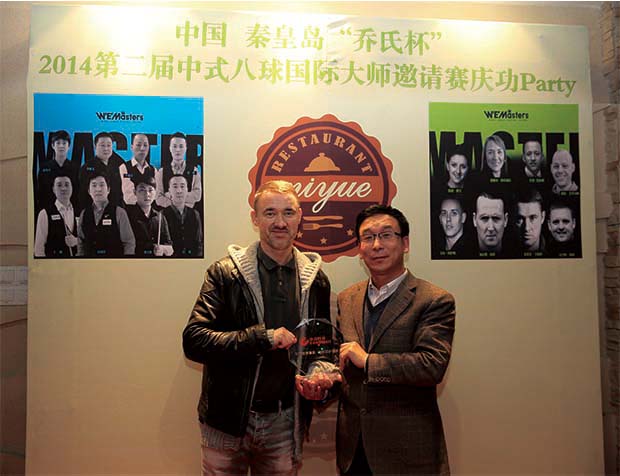 經(jīng)過四天的激烈角逐,我公司贊助的第二屆中式八球國際大師邀請賽于1月5日晚在秦皇島奧體中心落下帷幕,英格蘭選手加雷斯·波茨以其高超的球技和良好的素質(zhì),將本屆冠軍獎杯和30萬元獎金收入囊中。 總決賽結(jié)束,我公司董事長、總經(jīng)理李銀祥出席了選手們的慶功宴會,對選手們精湛的球技和出色的表現(xiàn)表示欣賞和贊許。宴會期間,李銀祥還向“臺球皇帝”亨德利贈送了康姿百德玉磁紀念枕,并手捧精心制作的印有康姿百德LOGO的工藝品與亨德利合影留念。