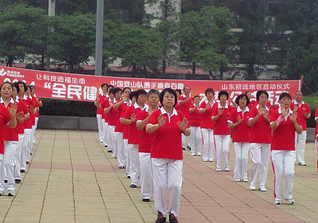 8月8日,山東招遠(yuǎn)的700多名康姿百德健身操愛(ài)好者和當(dāng)?shù)厥忻?,在市政府廣場(chǎng)載歌載舞,喜迎“全民健身日”,向人們倡導(dǎo)康姿百德公司提出的“健康睡眠+適量運(yùn)動(dòng)+合理飲食”的立體健康理念,傳遞著健康向上的正能量。 當(dāng)天上午8:30分,由當(dāng)?shù)乜底税俚聭?hù)外健身營(yíng)組織舉辦的2014“全民健身 快樂(lè)同行”大型公益活動(dòng)招遠(yuǎn)地區(qū)啟動(dòng)儀式在這里隆重舉行,招遠(yuǎn)經(jīng)銷(xiāo)商向廣大市民宣布了本次活動(dòng)的目的和意義,當(dāng)?shù)乜底税俚陆∩頎I(yíng)隊(duì)員進(jìn)行了健身操表演,贏得了在場(chǎng)觀眾的普遍贊賞。大家一致認(rèn)為,康姿百德健身操節(jié)拍有力,動(dòng)作到位,音樂(lè)優(yōu)美,具有適宜人群廣泛、簡(jiǎn)單易學(xué)的特點(diǎn),是市民健身鍛煉的好項(xiàng)目,今后要加入到這個(gè)健身隊(duì)伍中,為推廣全民健身貢獻(xiàn)力量。 本次活動(dòng)得到了當(dāng)?shù)赜嘘P(guān)部門(mén)和媒體的重視,招遠(yuǎn)市老體協(xié)等單位領(lǐng)導(dǎo)出席了啟動(dòng)儀式,招遠(yuǎn)新聞對(duì)本次活動(dòng)進(jìn)行了報(bào)道。