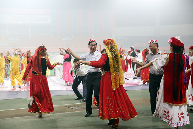 全場互動(dòng)跳新疆舞 中央電視臺、中國體育報(bào)、科技日報(bào)、健康時(shí)報(bào)、北京電視臺、秦皇島電視臺等多家新聞媒體應(yīng)邀出席會(huì)議,參與活動(dòng)的現(xiàn)場宣傳報(bào)道。 |