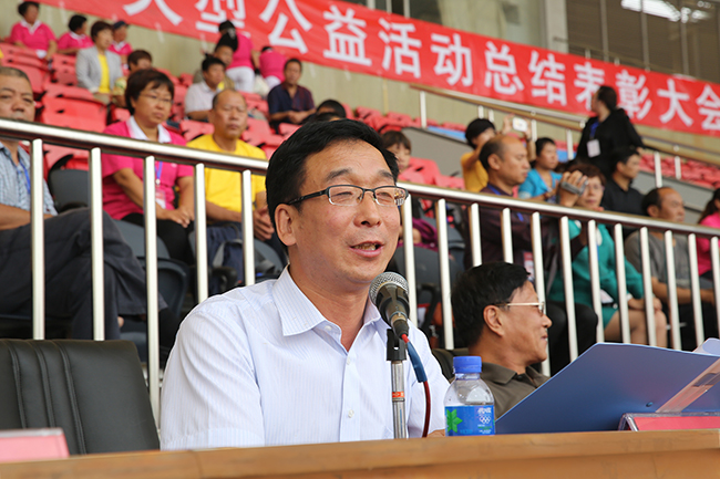氣勢宏大的健身操表演 健身操比賽結(jié)束,與會(huì)領(lǐng)導(dǎo)為1380名2013年康姿百德健康大使和健身操表演獲獎(jiǎng)代表隊(duì)分別頒發(fā)了紀(jì)念品和獎(jiǎng)品。頒獎(jiǎng)過程中,著名歌唱家王潔實(shí)、90后網(wǎng)絡(luò)歌手楊德朗和著名女高音歌唱家、北京軍區(qū)戰(zhàn)友歌舞團(tuán)演員耿蓮鳳,先后為大家傾情演唱了《外婆的澎湖灣》、《最美中國人》、《年輕的朋友來相會(huì)》等膾炙人口的歌曲,秦皇島市舞蹈健身愛好者表演的舞蹈和花樣跳繩,也為活動(dòng)增添了不少亮點(diǎn)。