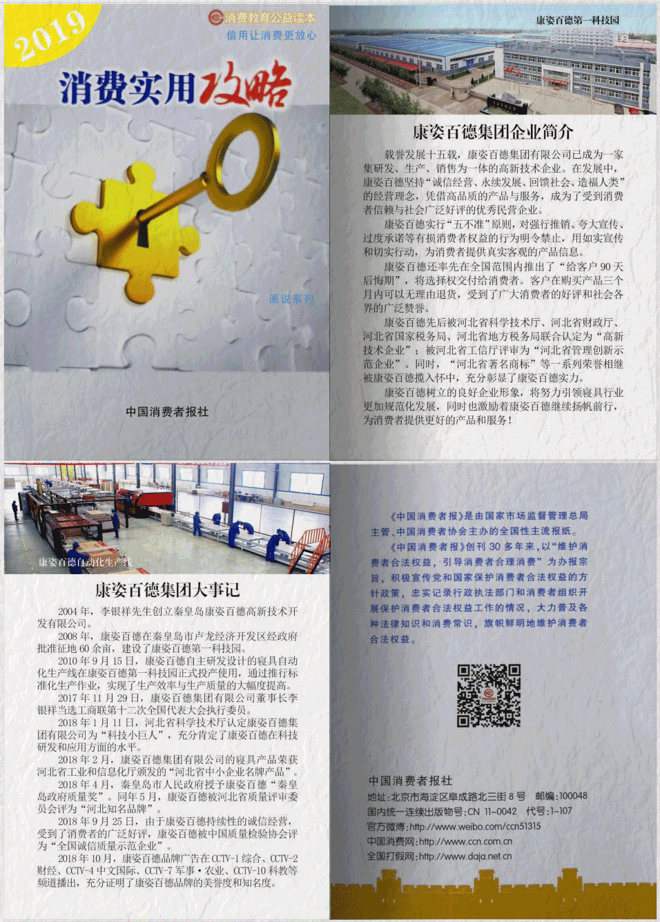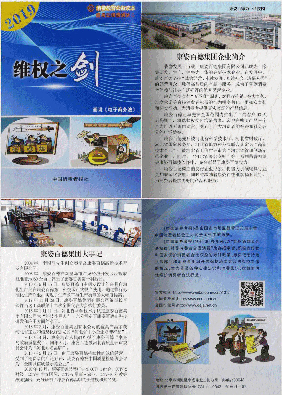 中國消費(fèi)者報社印發(fā)的普法手冊《消費(fèi)實用攻略》、《維權(quán)之劍》,均對康姿百德進(jìn)行了報道。