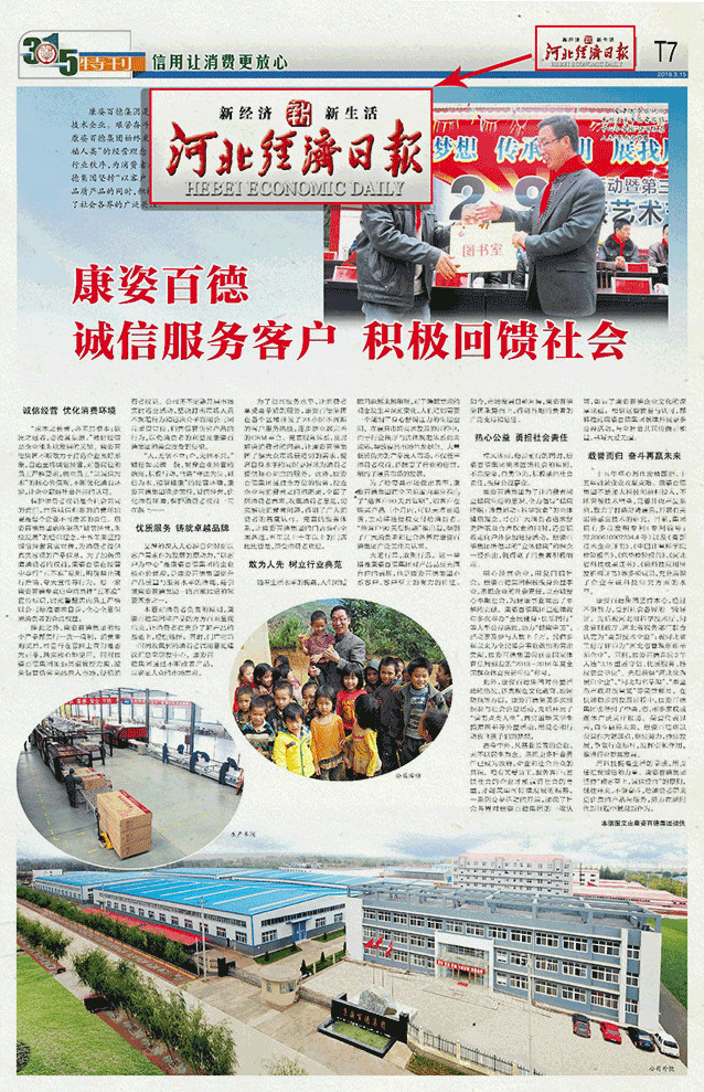 以下是《河北經(jīng)濟(jì)日報》以“誠信服務(wù)客戶,積極回饋社會”為主題對康姿百德的報道。