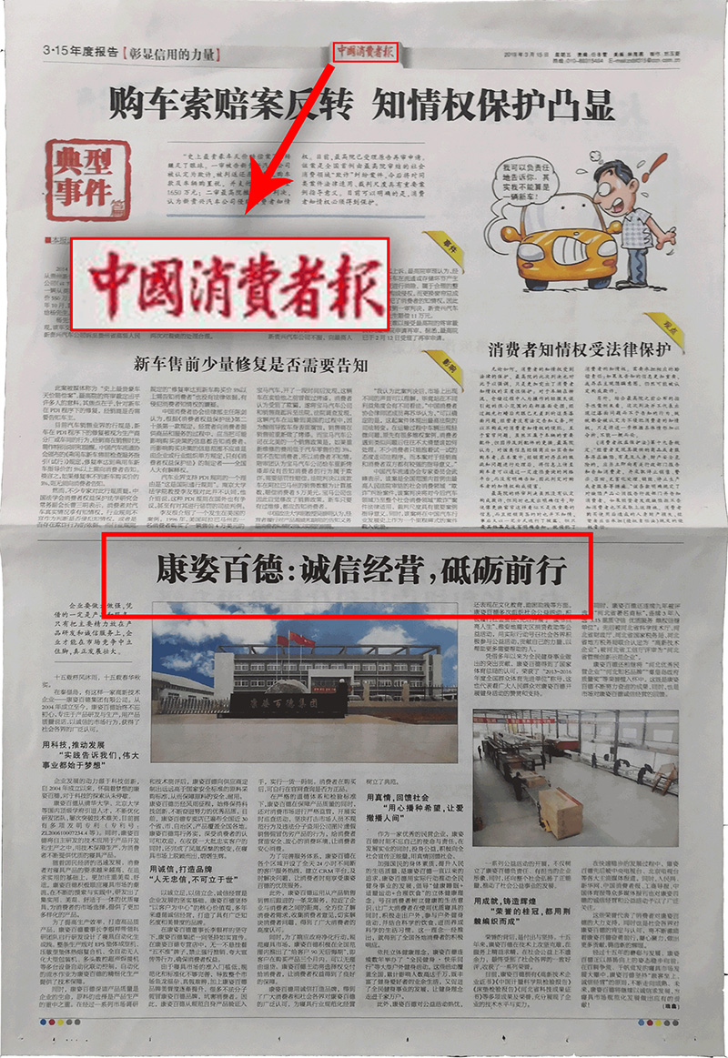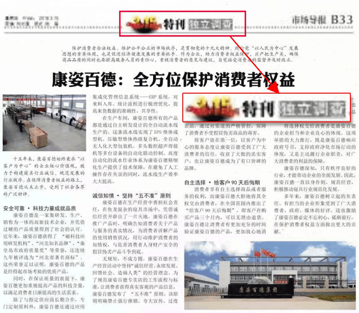 在3·15年度報告【彰顯信用的力量】專題中,《中國消費(fèi)者報》對康姿百德“九十天無理由退貨”等一系列誠信經(jīng)營、保護(hù)消費(fèi)者權(quán)益的行為進(jìn)行了專題報道。