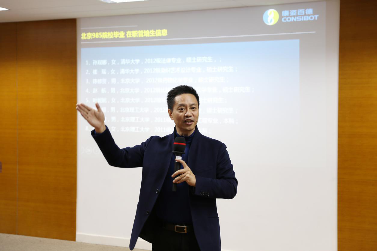 董事長李銀祥就他的求學和創(chuàng)業(yè)經(jīng)歷為大家做了精彩的分享,還從中國經(jīng)濟的現(xiàn)狀揭示了健康產(chǎn)業(yè)的廣闊前景。李董事長說道“我是一個價值觀驅(qū)動的人,科學救國的理念一直深埋在我的內(nèi)心,之前多年的科研經(jīng)歷和創(chuàng)業(yè)歷程給了我堅持下去的信心,所以,才有了今天的康姿百德。”李董事長在談及人才戰(zhàn)略時說:“康姿百德‘以人才為根、以奮斗者為本’的人才戰(zhàn)略不會變、注重塑造品格的培訓體系不會變,重視人才的胸懷不會變。所以歡迎廣大畢業(yè)生們加入康姿百德,與我們這匹黑馬一起飛奔!”董事長李銀祥真摯地講話贏得了現(xiàn)場陣陣掌聲。