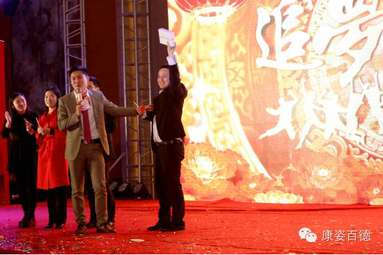 △“康姿百德2016我最喜歡的年會節(jié)目”一等獎獲得者上臺領(lǐng)獎