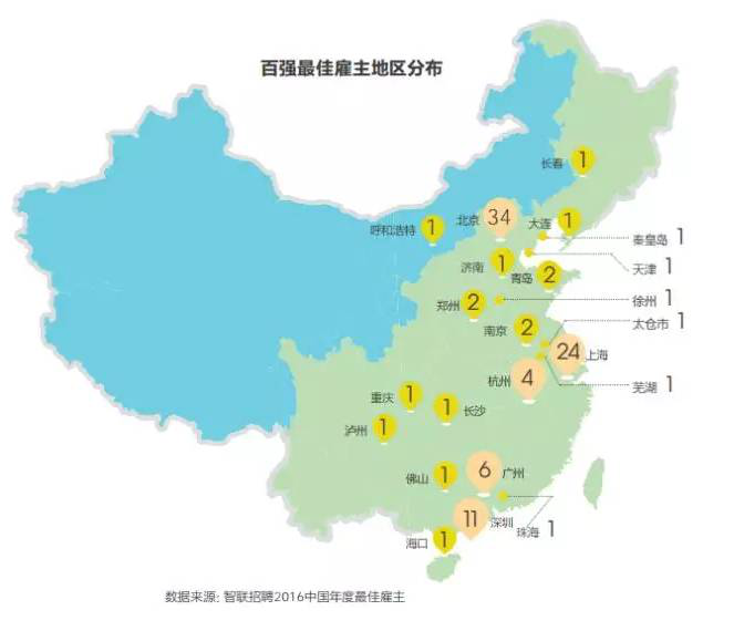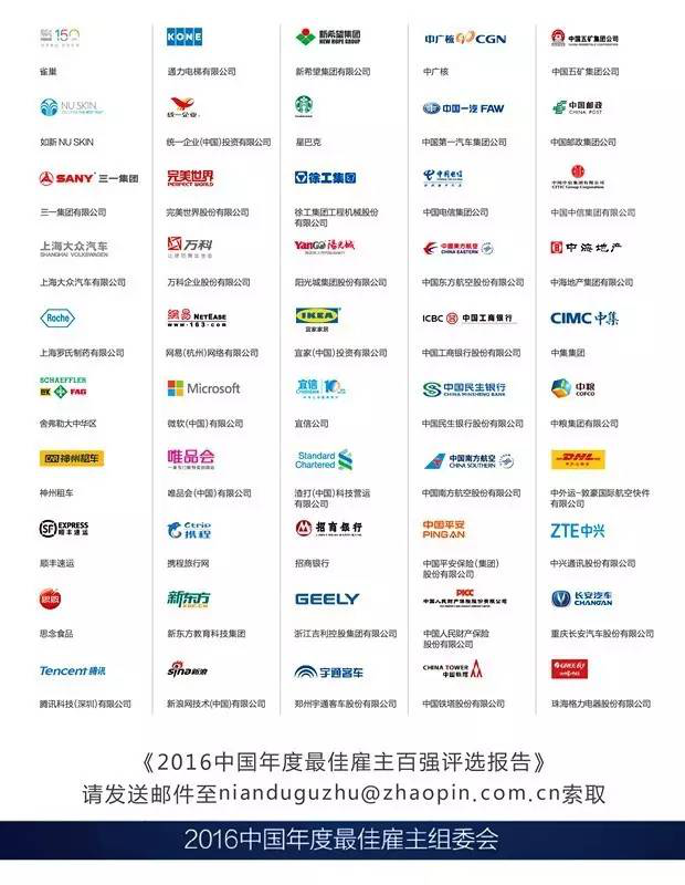 「2016中國年度最佳雇主百強榜單」如下: