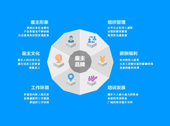 越來越多的雇主和雇員會傾向于在共同價值觀的引導下,為了共同的目標和追求聚集在一起??底税俚鹿椭髌放埔苍诓粩噱N煉中逐漸升華,從組織管理、薪酬福利、培訓發(fā)展、工作環(huán)境、文化與形象等方面,為求職者和雇員營造出一個充滿活力的雇主品牌形象。