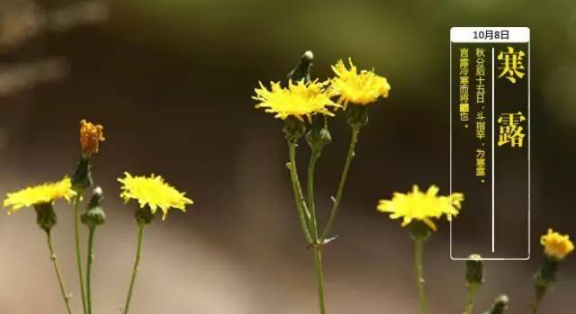 從字面上看,寒露的“寒”就是寒冷,“露”則表示了近地面水汽凝結成露水的現(xiàn)象。但從氣象角度來看,寒露節(jié)氣和白露、霜降這兩個節(jié)氣一樣,所表示的熱量變化意義比它的水分變化意義更為明顯。應該說,寒露更多地體現(xiàn)了一種氣溫轉變,季節(jié)轉換的過程。