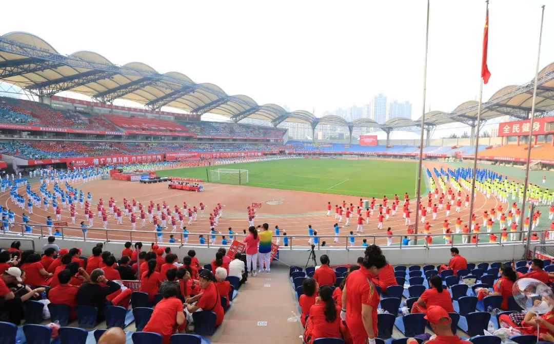 今天,共有近萬名健身愛好者參賽。大家各個(gè)精神抖擻,踏著康姿百德健身操音樂節(jié)拍,整齊劃一地舞動(dòng)起來,將快樂綻放,把健康傳遞!