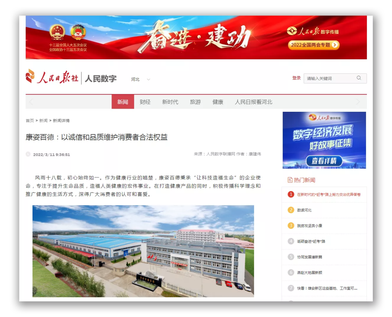 同時,人民日報社數(shù)字網(wǎng)、長城網(wǎng)冀云客戶端等多家媒體也對康姿百德進行了全方位報道。