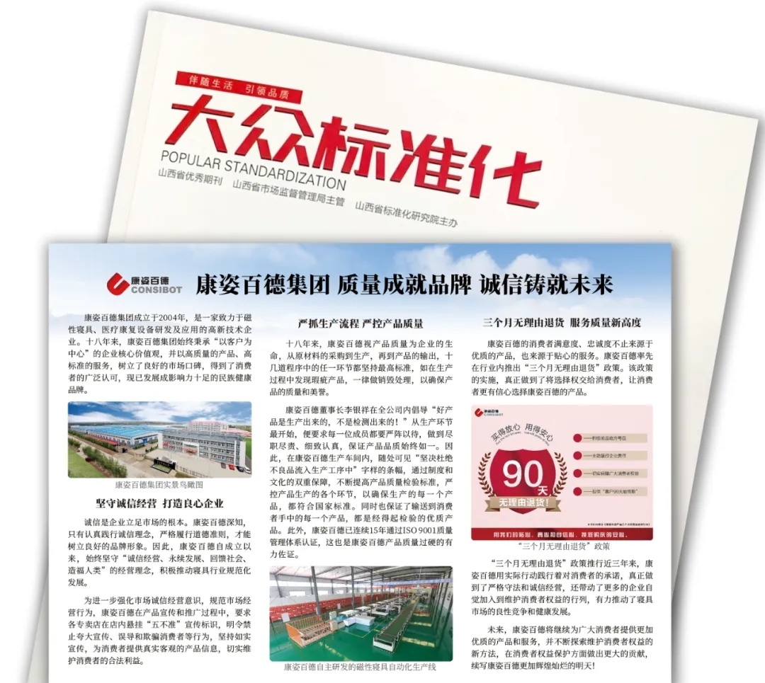 山西市場監(jiān)督管理局唯一發(fā)行的期刊《大眾標準化》雜志,也對康姿百德進行了報道。