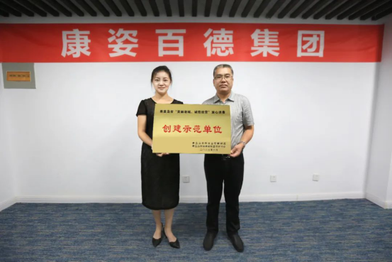 2023年8月17日,秦皇島市市場(chǎng)監(jiān)督管理局二級(jí)調(diào)研員 王志松、秦皇島市市場(chǎng)監(jiān)督管理局消費(fèi)者權(quán)益保護(hù)科科長(zhǎng) 滕炳新、秦皇島市消費(fèi)者權(quán)益保護(hù)委員會(huì)秘書長(zhǎng) 劉靜一行,為康姿百德頒發(fā)“放心消費(fèi)創(chuàng)建示范單位”榮譽(yù)獎(jiǎng)牌??底税俚录瘓F(tuán)人力資源中心總經(jīng)理、自營(yíng)公司總經(jīng)理、西點(diǎn)商學(xué)院副院長(zhǎng) 劉婷代表公司領(lǐng)取榮譽(yù)獎(jiǎng)牌,同時(shí)承諾今后將繼續(xù)扎實(shí)推進(jìn)放心消費(fèi)創(chuàng)建活動(dòng),努力提升商品質(zhì)量和服務(wù)水平,時(shí)刻把顧客的利益和口碑放在第一位,營(yíng)造安全放心的消費(fèi)環(huán)境。