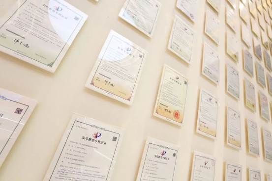 整面的專利墻,收錄了李銀祥董事長(zhǎng)領(lǐng)導(dǎo)的旗下集團(tuán)百余項(xiàng)專利。這面墻沒有過多的裝飾,卻足以彰顯李銀祥董事長(zhǎng)對(duì)科研創(chuàng)新的重視和投入??底税俚略诶钽y祥董事長(zhǎng)的領(lǐng)導(dǎo)下,自成立以來就高度重視在科研方面的投入,不斷加大科研投入力度,致力于提升產(chǎn)品和服務(wù)質(zhì)量。
