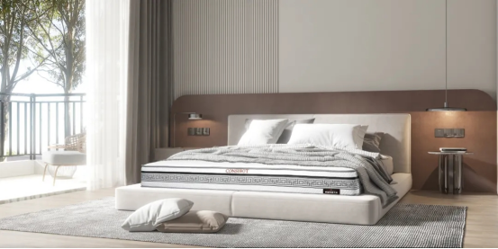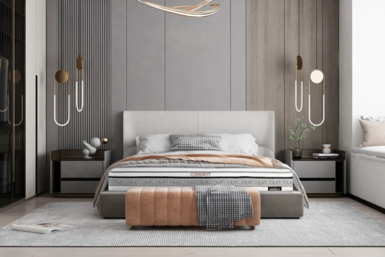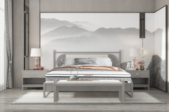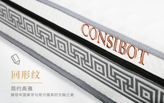 回形紋是中國傳統(tǒng)的吉祥圖案,象征著永恒和連綿不斷的生命力??底税俚虑逖趴畲矇|圍邊用“回形紋”加以點綴,賦予了吉祥如意、福運綿綿的美好寓意,展現(xiàn)了中式美學(xué)與現(xiàn)代寢具的交融之美。同時也增強了床墊整體的精致感。