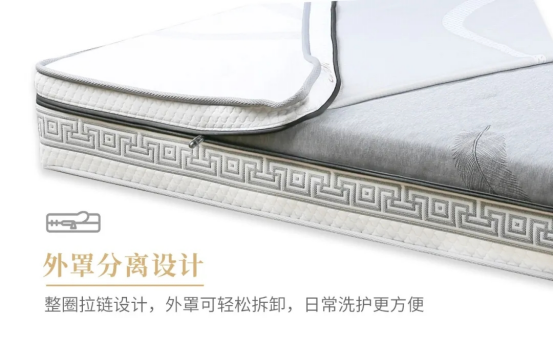 康姿百德清雅款床墊還采用上下外罩分離設(shè)計,拉開拉鏈后可將床墊外套拆分成上下兩部分,拆裝清潔更方便。
