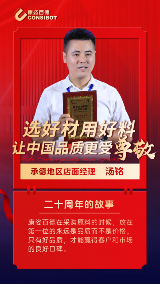 今年是康姿百德集團(tuán)成立20周年。在20年的發(fā)展歷程中,涌現(xiàn)出一大批在生產(chǎn)發(fā)展、原料采購、質(zhì)量管控、經(jīng)營管理、售后服務(wù)等各個領(lǐng)域立足崗位、奉獻(xiàn)建功的優(yōu)秀代表。讓我們一起看看這些榜樣故事。本期帶你走進(jìn)康姿百德承德地區(qū)店面經(jīng)理湯銘。