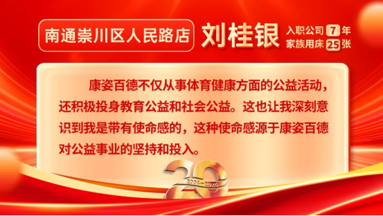 康姿百德20周年專賣店員工的系列故事會(huì)持續(xù)推出,讓我們一起期待其他地區(qū)專賣店員工代表的精彩故事吧!