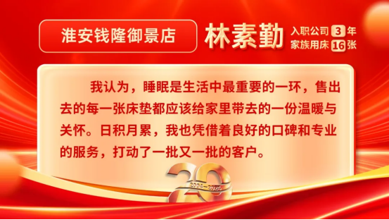 林素勤的故事,是每一位專賣店優(yōu)秀店員的縮影。她用實(shí)際行動(dòng)詮釋了“以情動(dòng)人,以誠(chéng)贏心”的真諦。在未來(lái)的日子里,相信她會(huì)繼續(xù)以這份熱情與執(zhí)著,把康姿百德產(chǎn)品推薦給更多的人,為更多家庭帶去健康的睡眠。