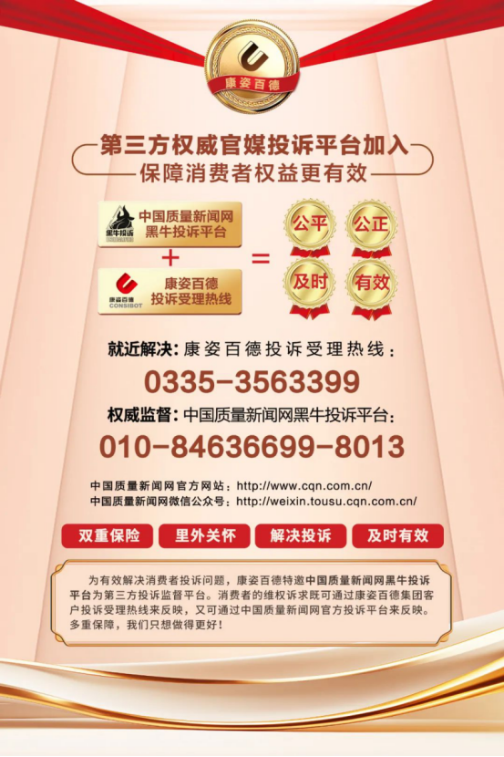 多年來,康姿百德認(rèn)真踐行“以客戶為中心”的企業(yè)核心價(jià)值觀,高度重視消費(fèi)者的需求和體驗(yàn)??底税俚录瘓F(tuán)已于2024年3月加入了全國(guó)消協(xié)“智慧315”消費(fèi)維權(quán)投訴平臺(tái)。除此之外,康姿百德還特邀中國(guó)質(zhì)量新聞網(wǎng)黑牛投訴平臺(tái)作為企業(yè)第三方投訴監(jiān)督平臺(tái),并統(tǒng)一制作監(jiān)督舉報(bào)公示牌懸掛在全國(guó)所有門店內(nèi),主動(dòng)接受消費(fèi)者的監(jiān)督。