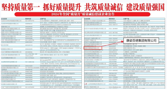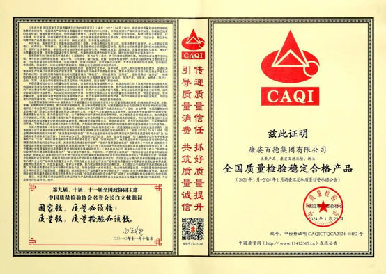 康姿百德集團(tuán)榮獲“全國(guó)消費(fèi)者質(zhì)量信譽(yù)保障產(chǎn)品”、“全國(guó)質(zhì)量檢驗(yàn)穩(wěn)定合格產(chǎn)品”榮譽(yù)稱號(hào)