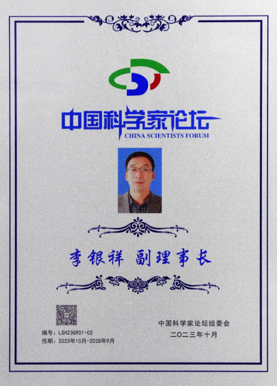 李銀祥董事長(zhǎng)當(dāng)選為“中國(guó)科學(xué)家論壇理事會(huì)副理事長(zhǎng)”
