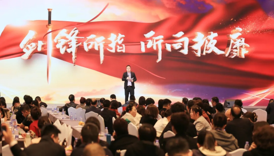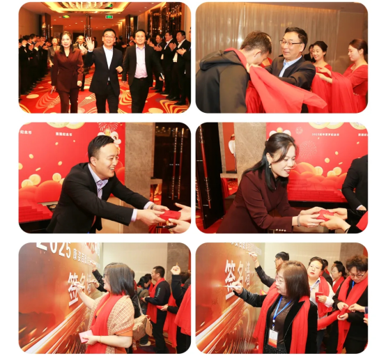 在璀璨燈光下,銷售精英們臉上綻放著溫暖的笑容。踏著紅毯,家人們意氣風(fēng)發(fā)地邁向星光大道。公司領(lǐng)導(dǎo)將精心準(zhǔn)備的伴手禮送到每個參會家人的手里,并給家人們戴上象征“鴻運(yùn)當(dāng)頭”的紅絲巾。簽名墻上龍飛鳳舞的每一筆都飽含豪情,攝影師鏡頭定格的每個笑臉都凝結(jié)著團(tuán)隊(duì)榮耀的瞬間。