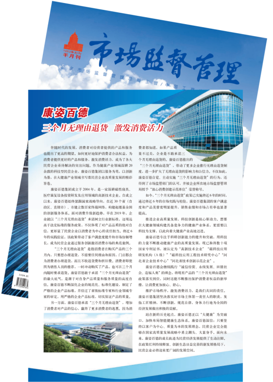 《市場監(jiān)督管理》半月刊以《康姿百德:三個月無理由退貨 激發(fā)消費活力》為題,全面、詳細(xì)地報道了康姿百德。