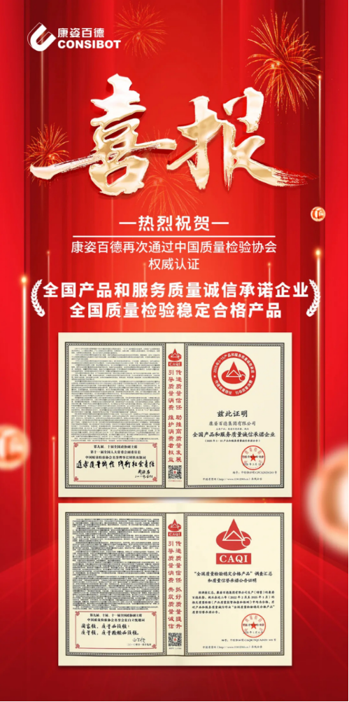 2025年315國際消費者權益日期間,康姿百德憑借過硬的質量管理能力和對產(chǎn)品質量的高度重視,再次榮獲由中國質量檢驗協(xié)會頒發(fā)的“全國產(chǎn)品和服務質量誠信承諾企業(yè)”、“全國質量檢驗穩(wěn)定合格產(chǎn)品”兩項權威認證。