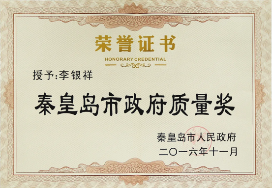 秦皇島市政府質(zhì)量獎(jiǎng)