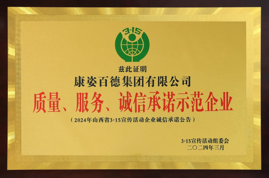 山西315宣傳活動(dòng)組委會(huì)為樹(shù)立行業(yè)典范,引導(dǎo)其他企業(yè)學(xué)習(xí)其質(zhì)量管理、服務(wù)規(guī)范及社會(huì)責(zé)任實(shí)踐,形成“以點(diǎn)帶面”的示范效應(yīng),設(shè)置了“質(zhì)量 服務(wù) 誠(chéng)信承諾示范企業(yè)”榮譽(yù)稱號(hào)??底税俚乱愿哔|(zhì)量的產(chǎn)品和優(yōu)異的服務(wù)質(zhì)量,成功獲獎(jiǎng)。