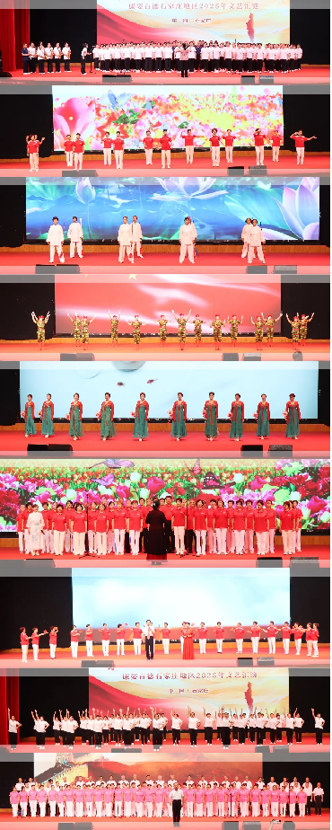 文藝匯演活動在開場舞《好日子》中拉開帷幕,舞者們動作整齊有力,展現(xiàn)出健康向上的精神風(fēng)貌,瞬間點燃了現(xiàn)場氣氛。隨后,大合唱、走秀、太極劍、團扇等多種形式的節(jié)目依次上演,異彩紛呈。