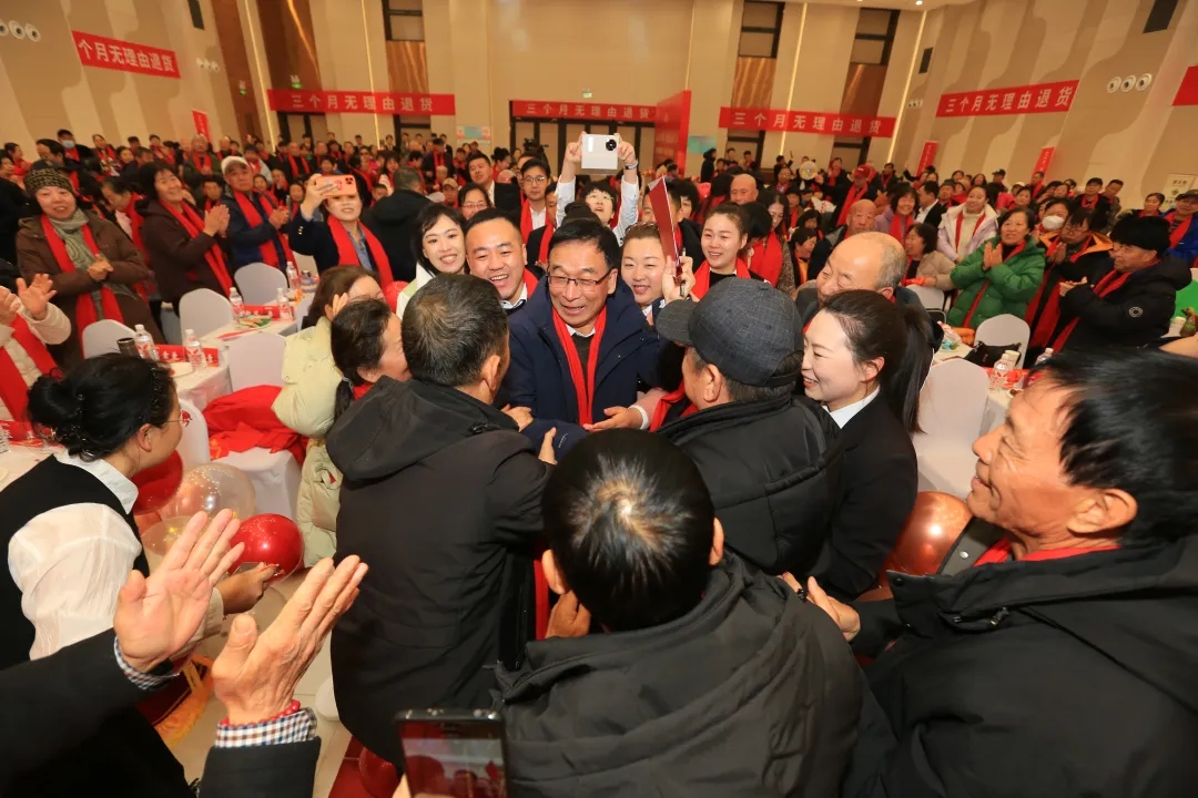 活動(dòng)現(xiàn)場(chǎng),銷(xiāo)售公司的領(lǐng)導(dǎo)們?cè)缫训群蛟诩t毯兩側(cè),笑容滿面地為每一位步入會(huì)場(chǎng)的“家人”親自系上象征吉祥與溫暖的紅圍巾??底税俚录瘓F(tuán)李銀祥董事長(zhǎng)的到來(lái),更讓現(xiàn)場(chǎng)瞬間沸騰,客戶們紛紛揮手致意,掌聲與歡呼聲交織成一片,將慶典的喜悅氛圍點(diǎn)燃。