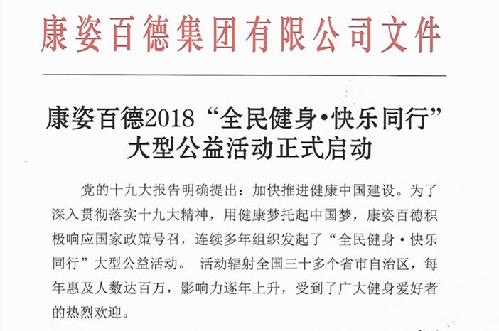康姿百德2018“全民健身?快樂(lè)同行”大型公益活動(dòng)正式啟動(dòng),公告全文如下:...